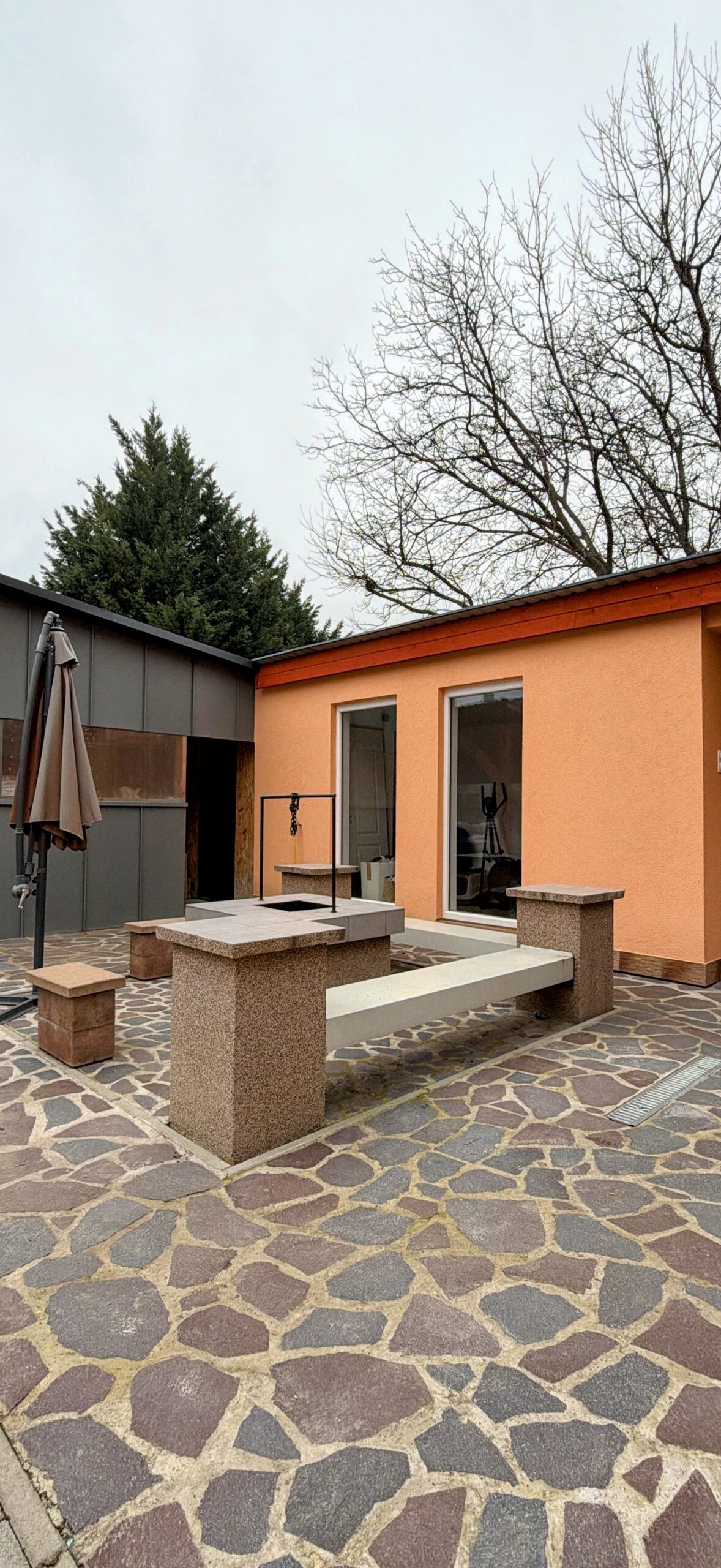 Der cca. Das 960 m² große Grundstück ist teilweise mit einem hochwertigen Kessel gepflastert.