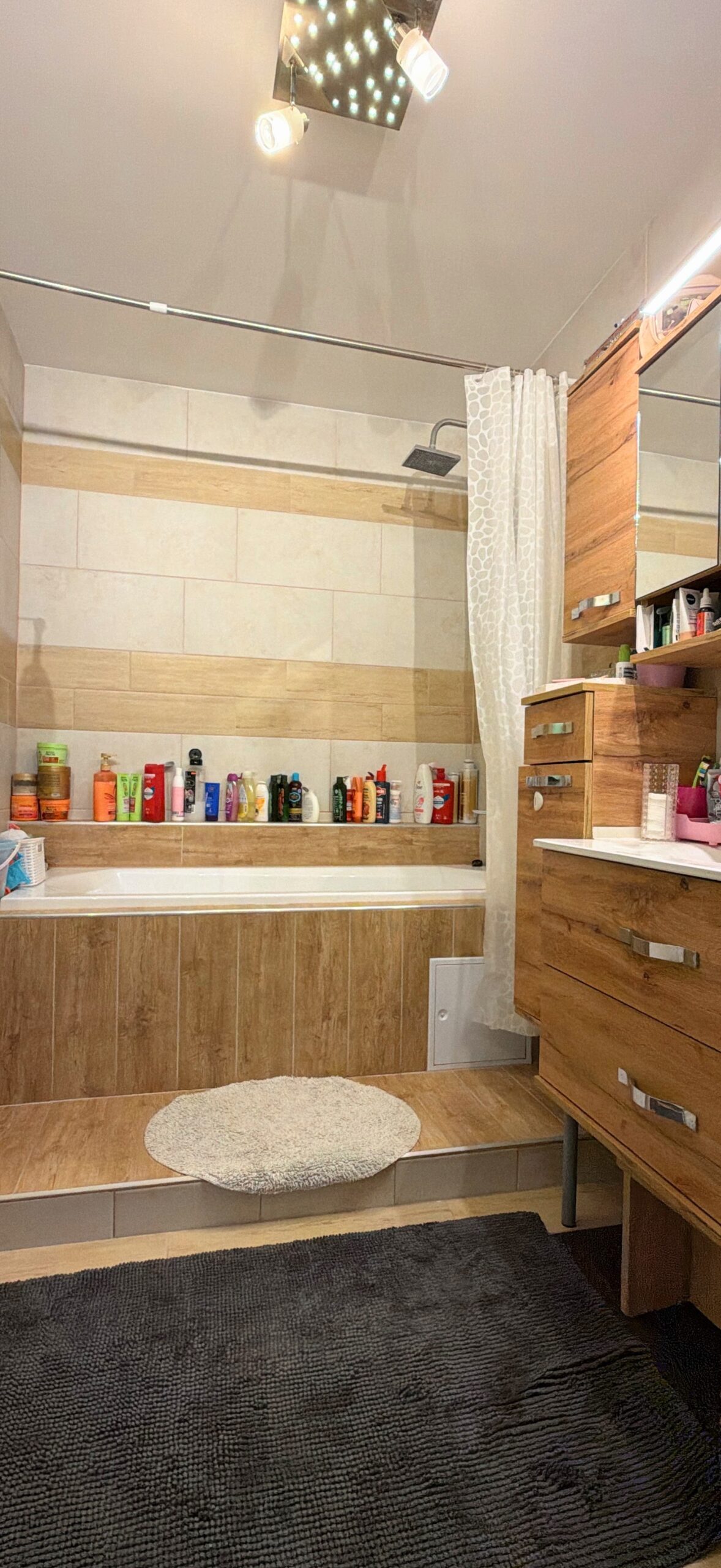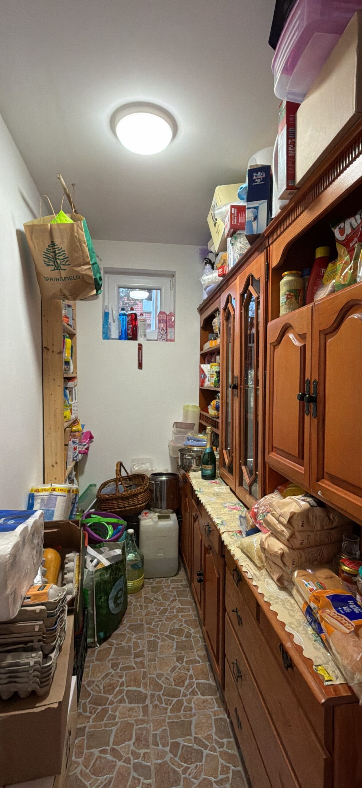 Im Untergeschoss befinden sich ein Wohnzimmer, ein Zimmer, ein Esszimmer-Küche, ein Badezimmer, eine separate Toilette, ein Kleiderschrank, eine Außenkammer und ein Flur.