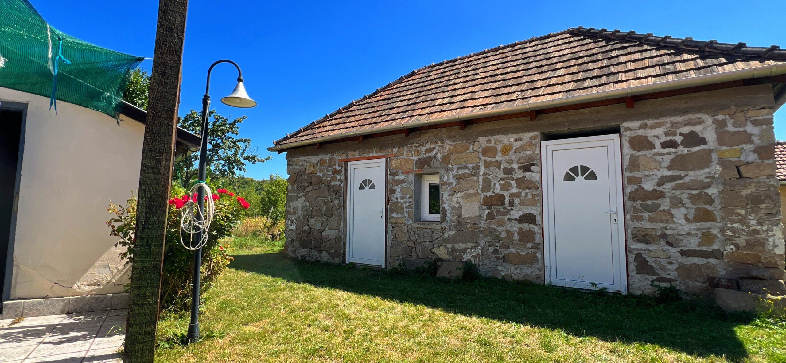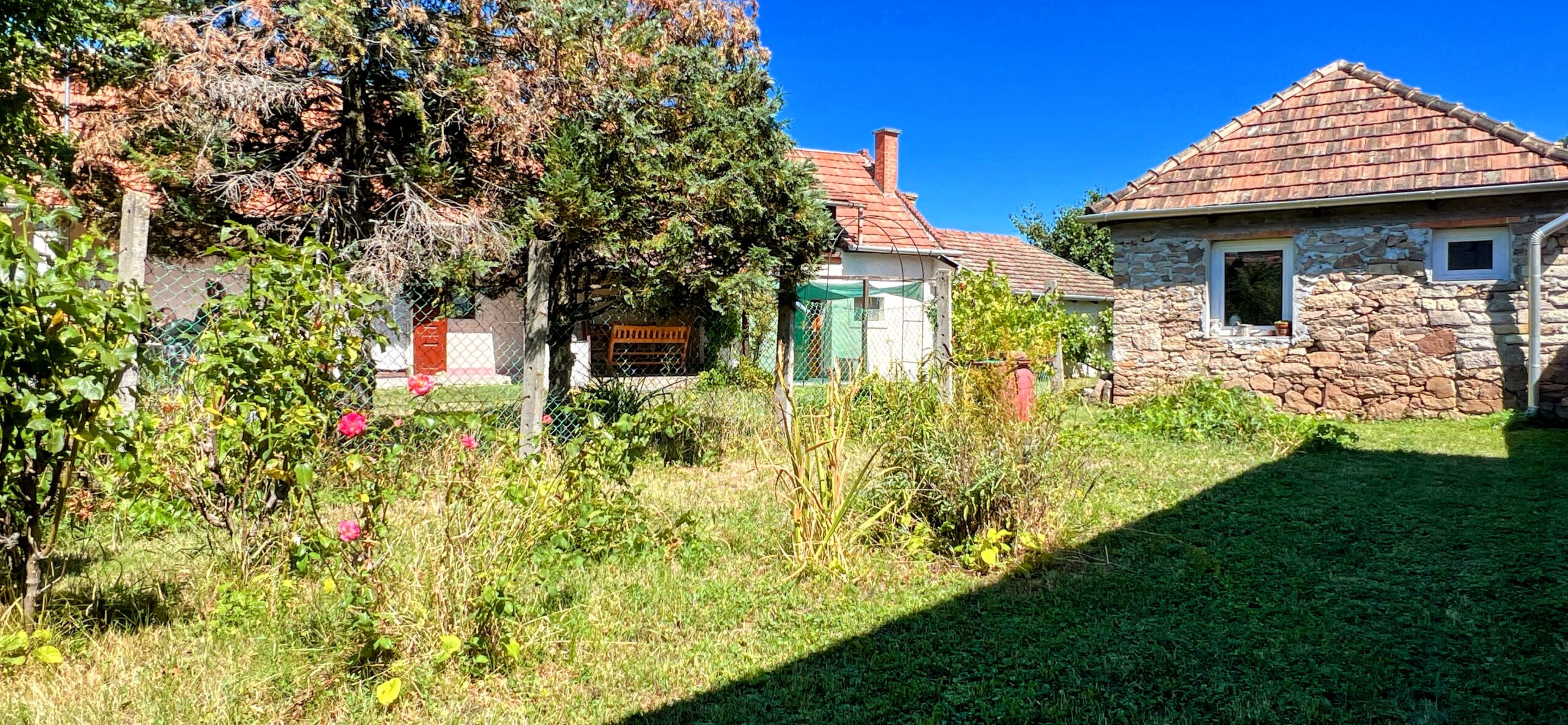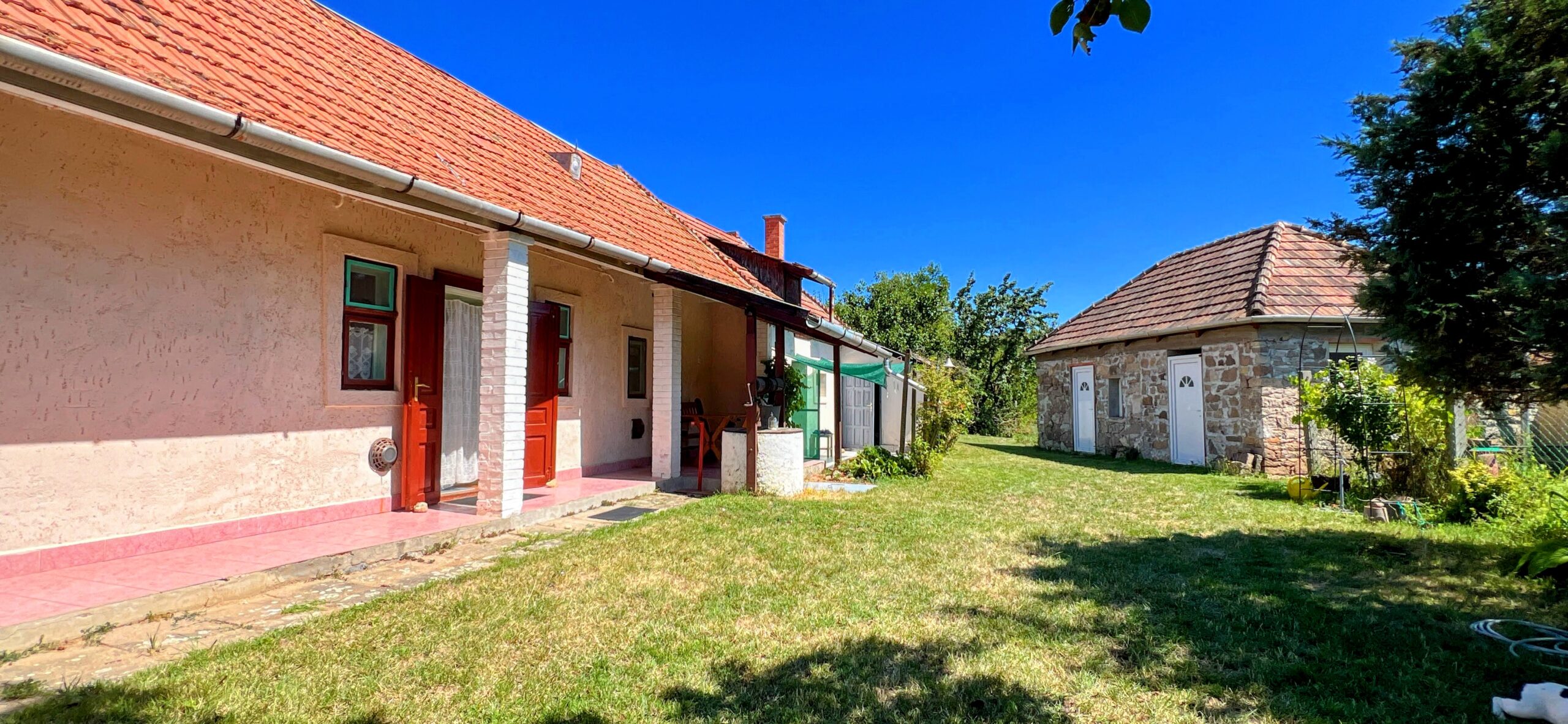 A cca. 900m2-es telken egy nagyon jó állapotú, kő falazatú 1 szoba+ konyha-nappali-s ház is van, az épületre új fa ácsolattal rendelkező tető került, a felújítás során új hőszigetelt nyílászárók lettek beépítve.