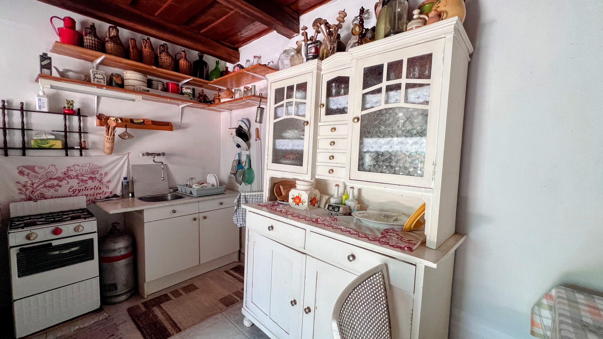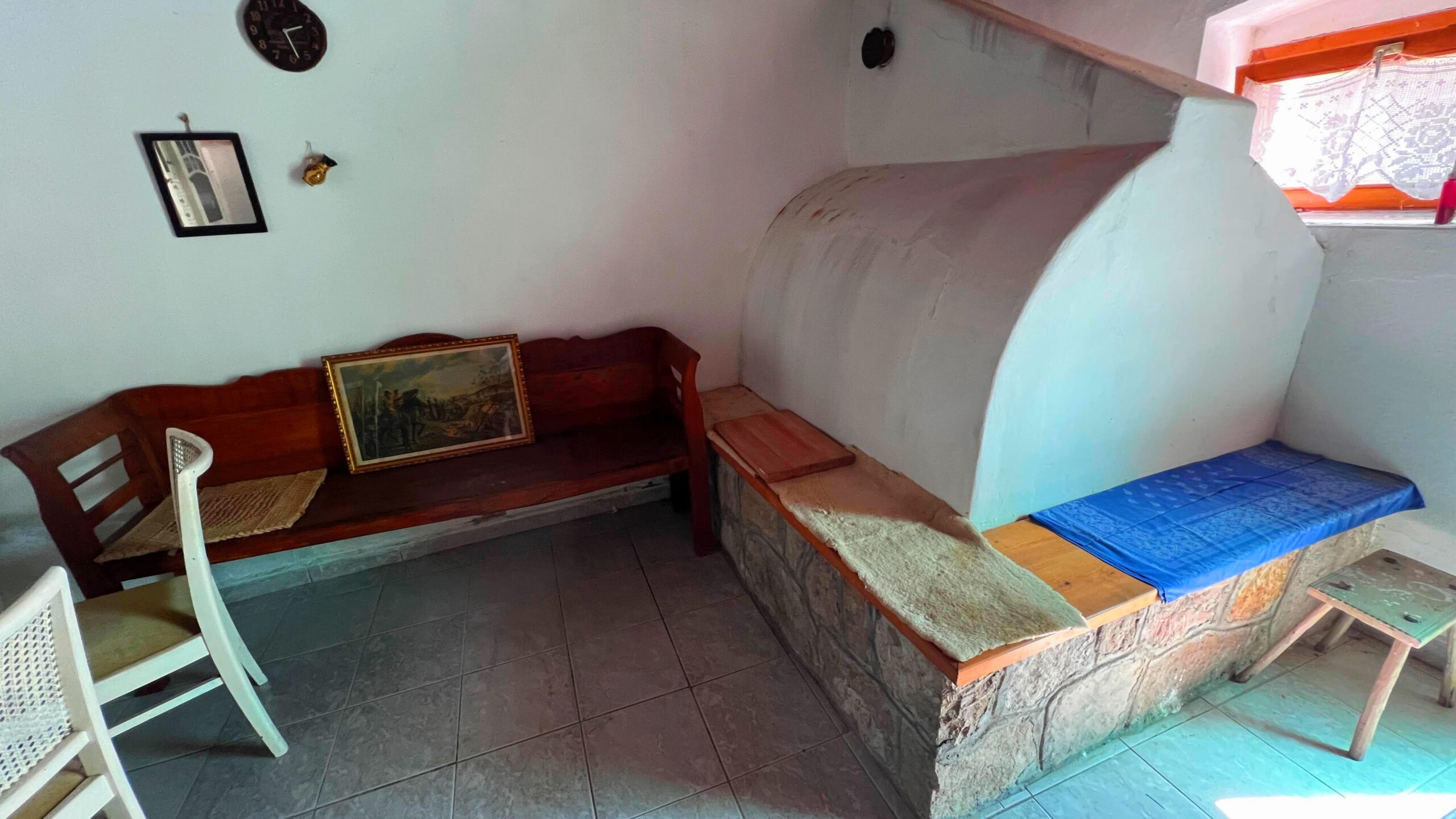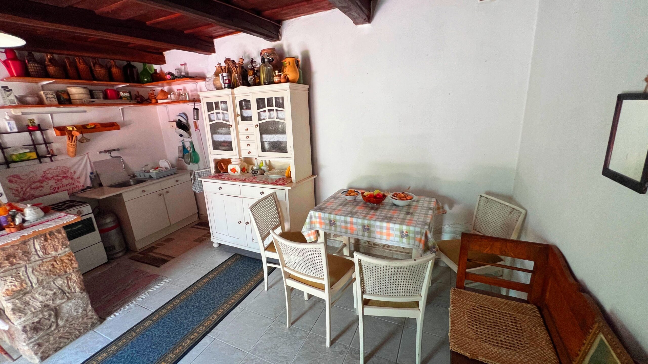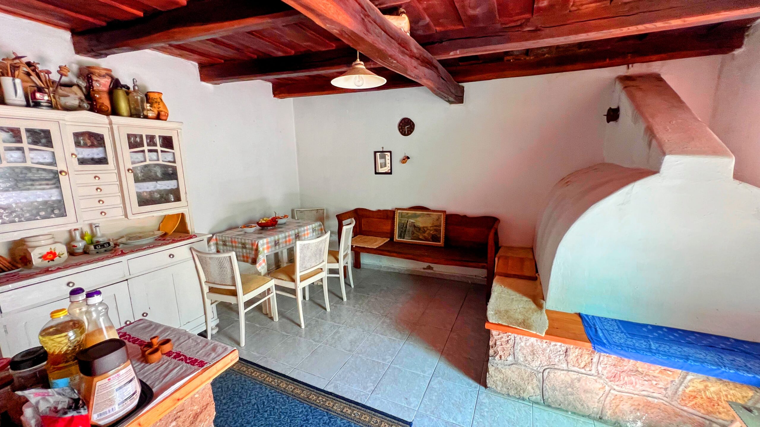 Die cca. In dem 80m2 großen Grundstück mit Steinmauern gibt es neben den 2 Zimmern einen zentralen Wohnbereich, einen Garderobenbereich und ein Badezimmer mit WC, die Küche hat einen Außeneingang, der in das Wohnhaus integriert ist, und hier wurde auch ein Holzofen eingerichtet.
