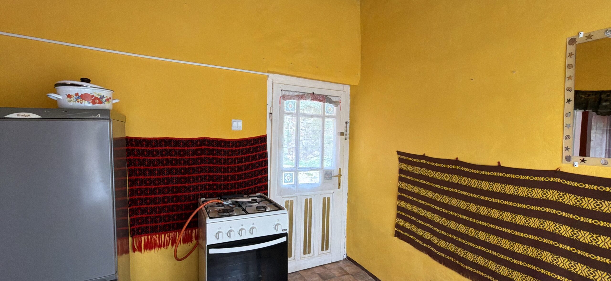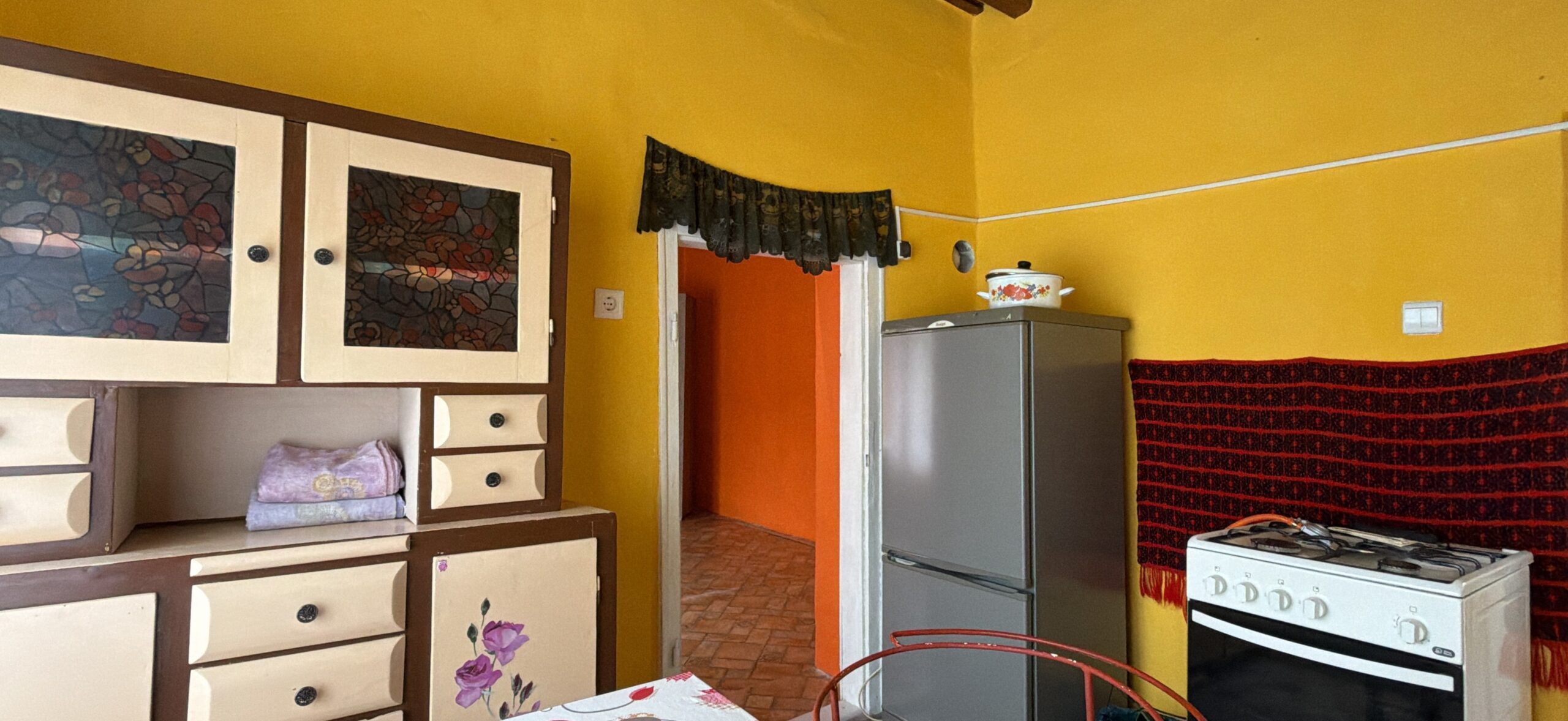 saját kúttal, cserépkályhával, 262m2-s telekkel és egy tufába vájt pincével.