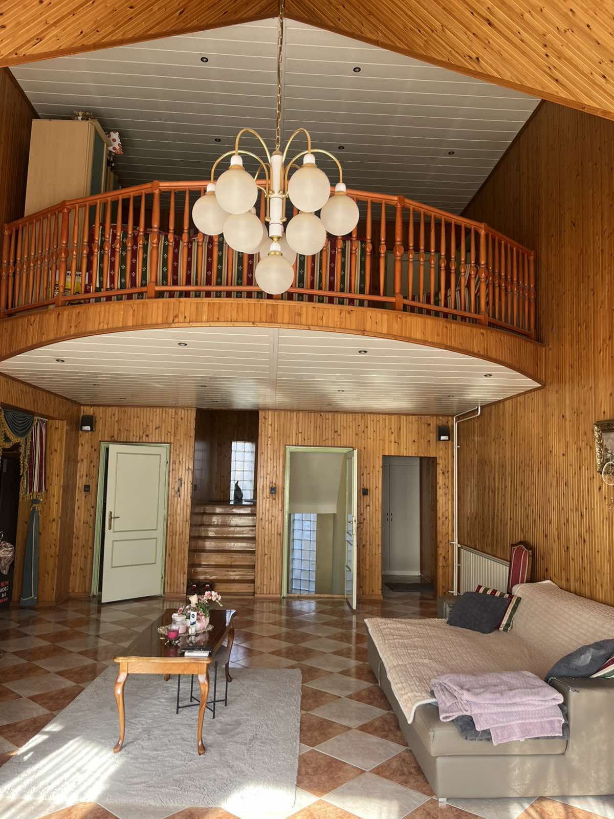 Az előszobán keresztül a tágas, napfényes, galériás nappaliba lépünk, ahonnan a konyha-étkező nyílik.