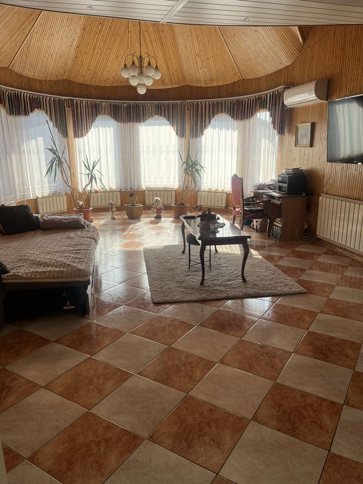 Az alsó szinten egy szoba található, amelyhez egy terasz is tartozik.