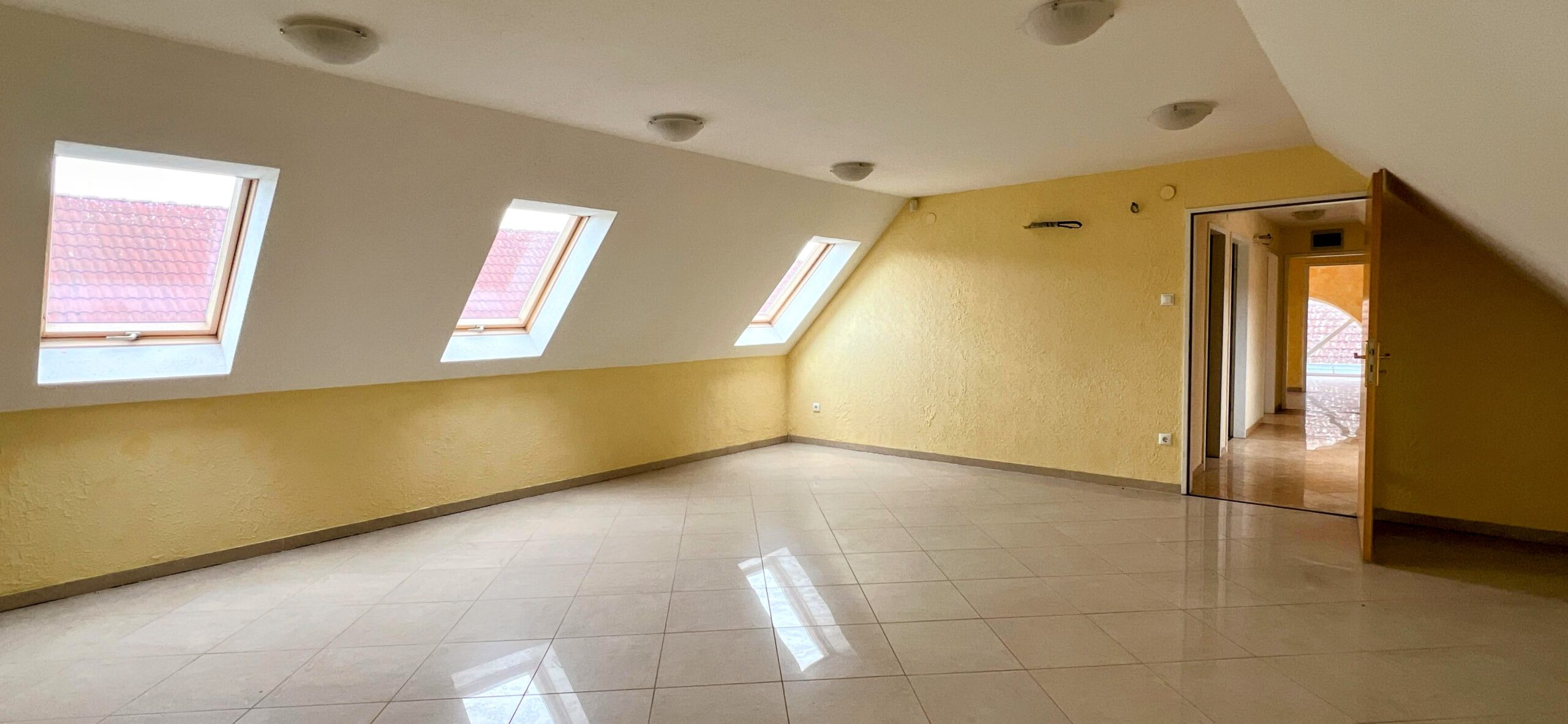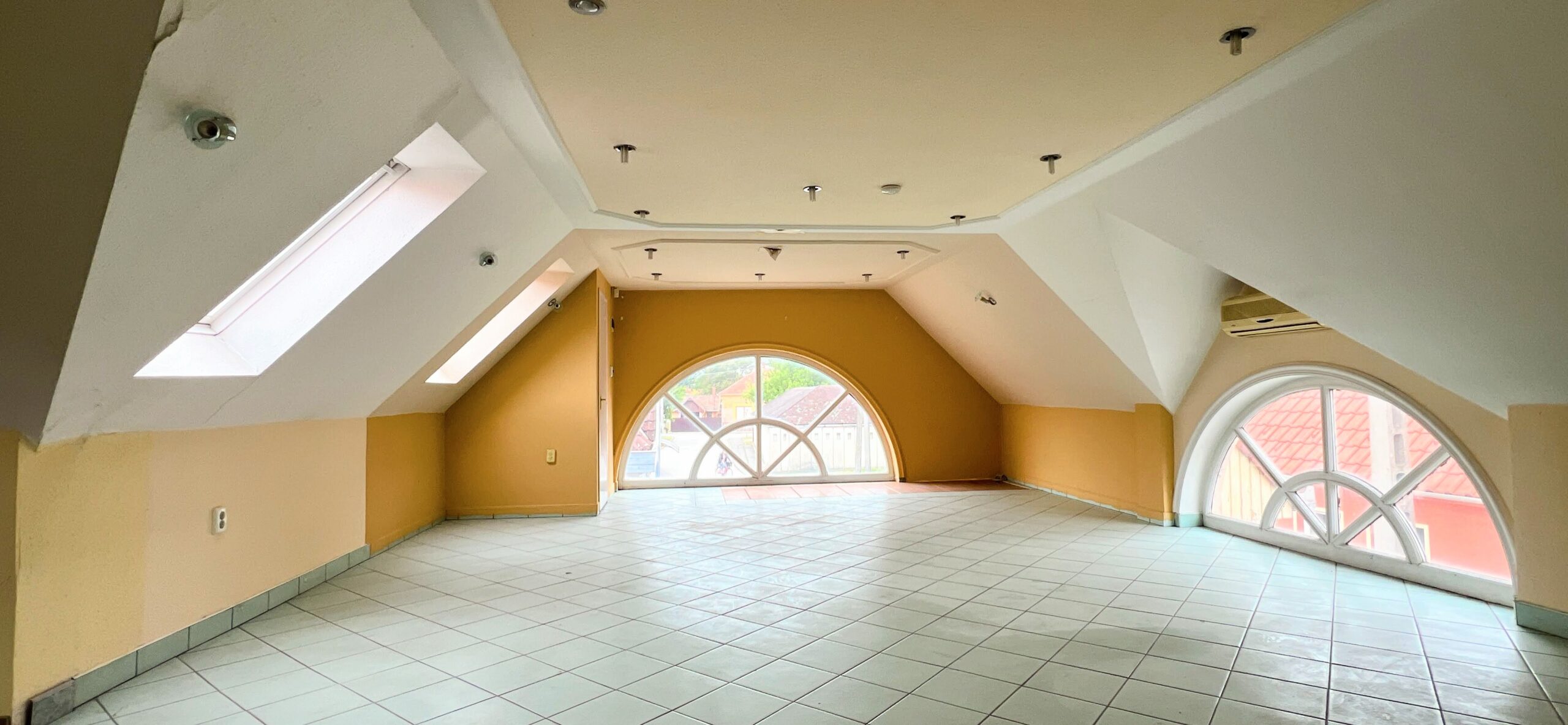 Az ingatlan cca. 400m2-es, tetőtér beépítéses, földszint cca. 220- és tetőtér cca. 170m2-s kialakítással.