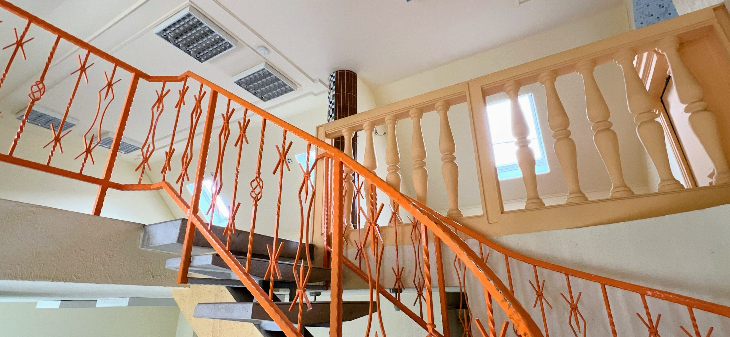 A felső szinten irodai, vizesblokk és bemutatótermi kialakítások is vannak.