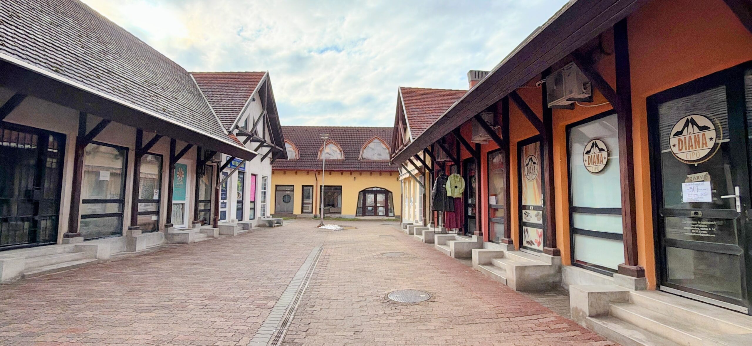 A város központjában, a Bevásárlóudvarban lévő üzlethelyiség 2X 24m2 alapterületű.
