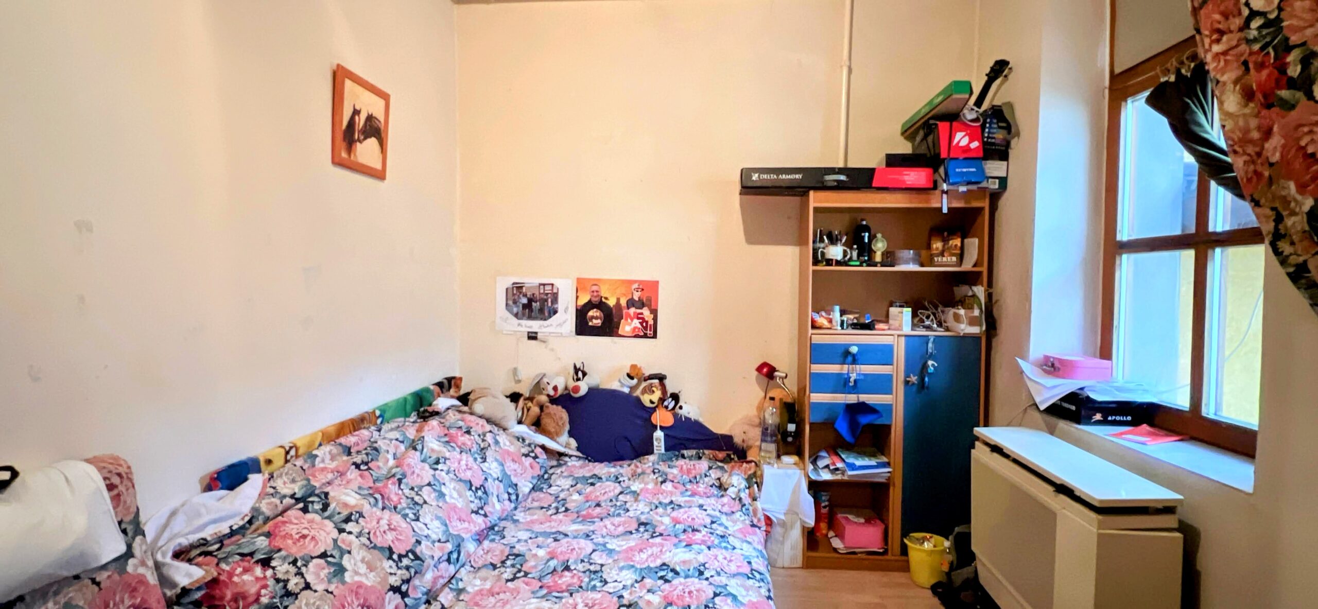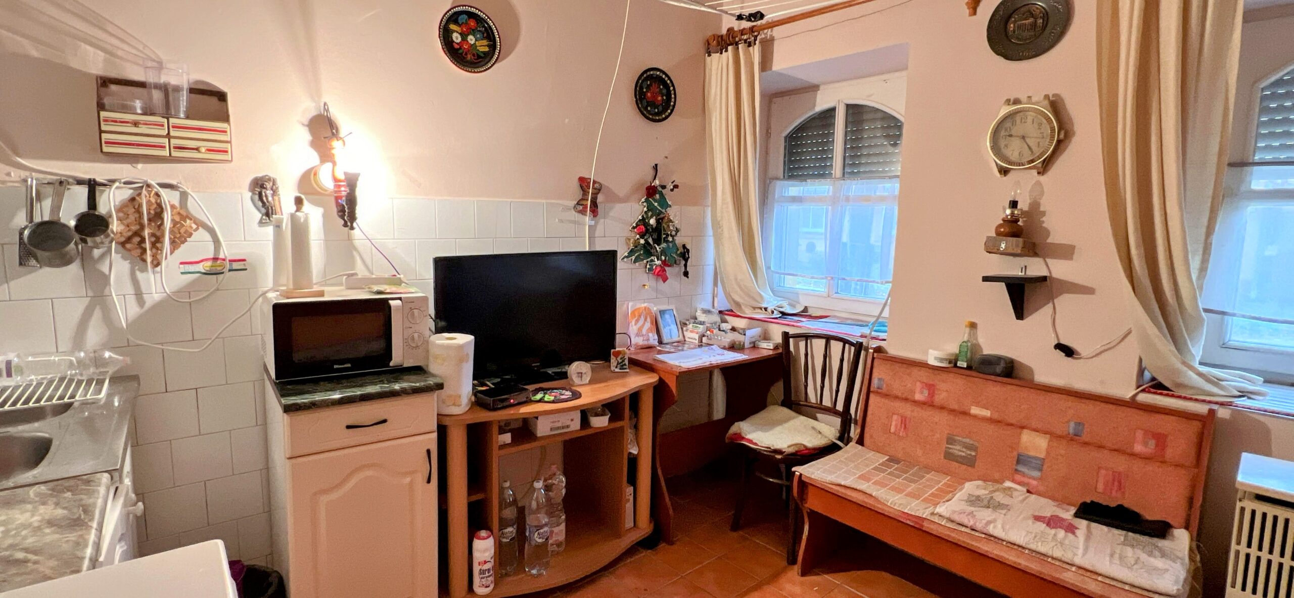 A belváros közeli, cca. 70m2-es ingatlanban 2 szoba, konyha-étkező, fürdőszoba toalettel, előszoba és közlekedő van.