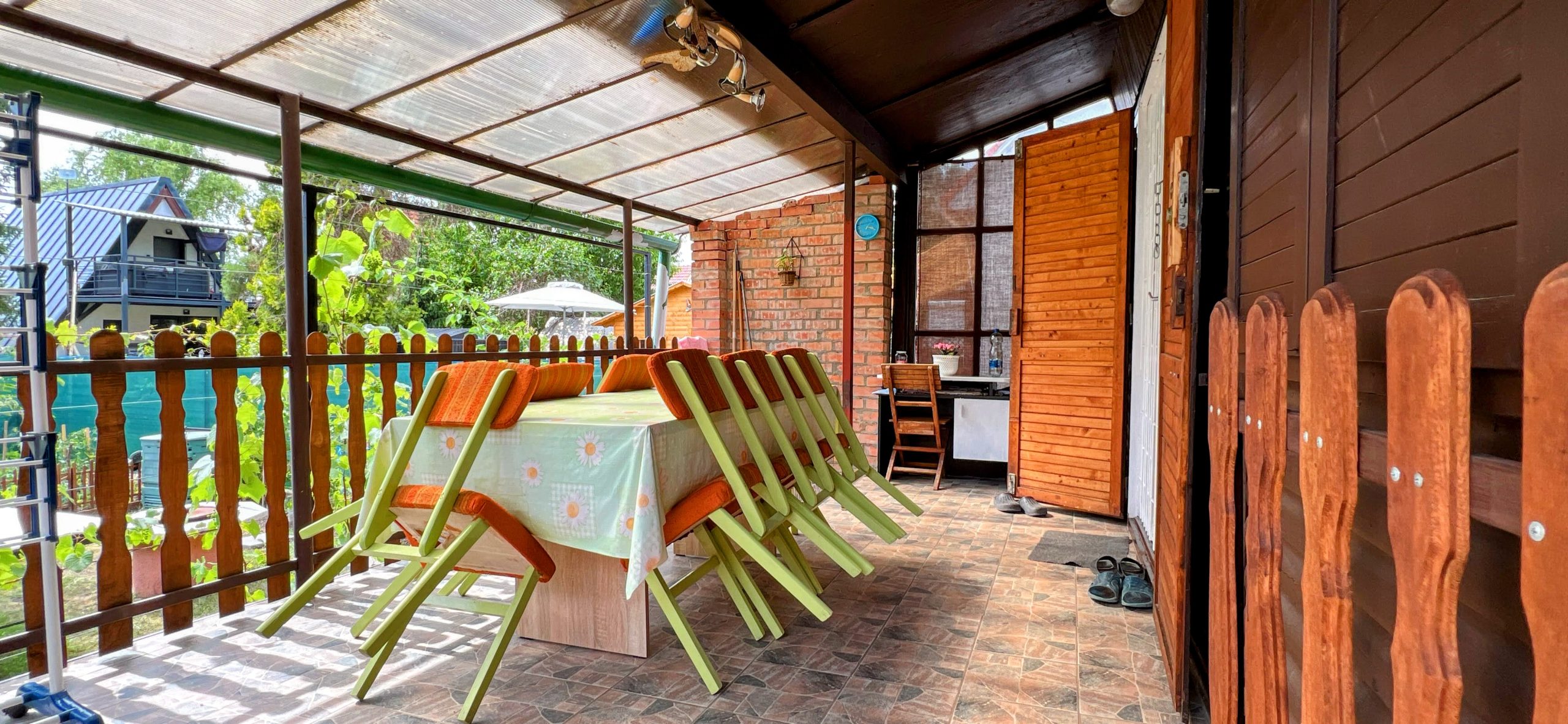 A nappaliból kilépve egy kényelmes pihenőteraszra jutunk, mely alatt kisebb pince is van.