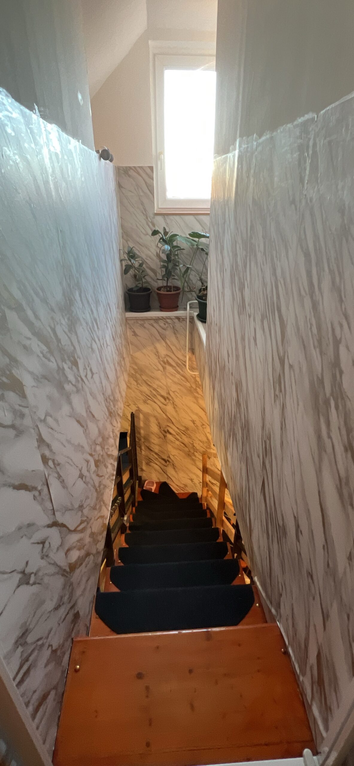 A villany már rézvezetékkel van áthúzva, a fürdőszoba réz csövezésű.