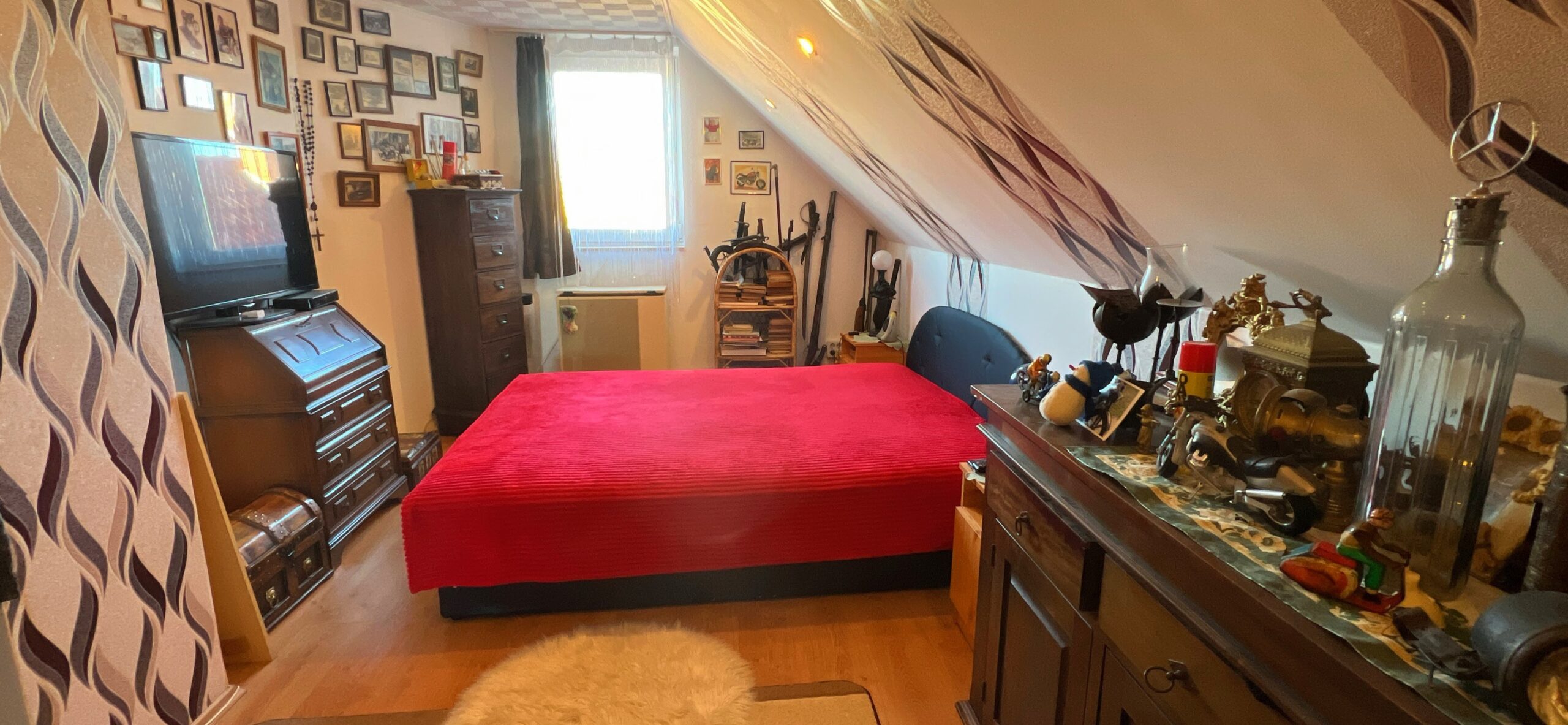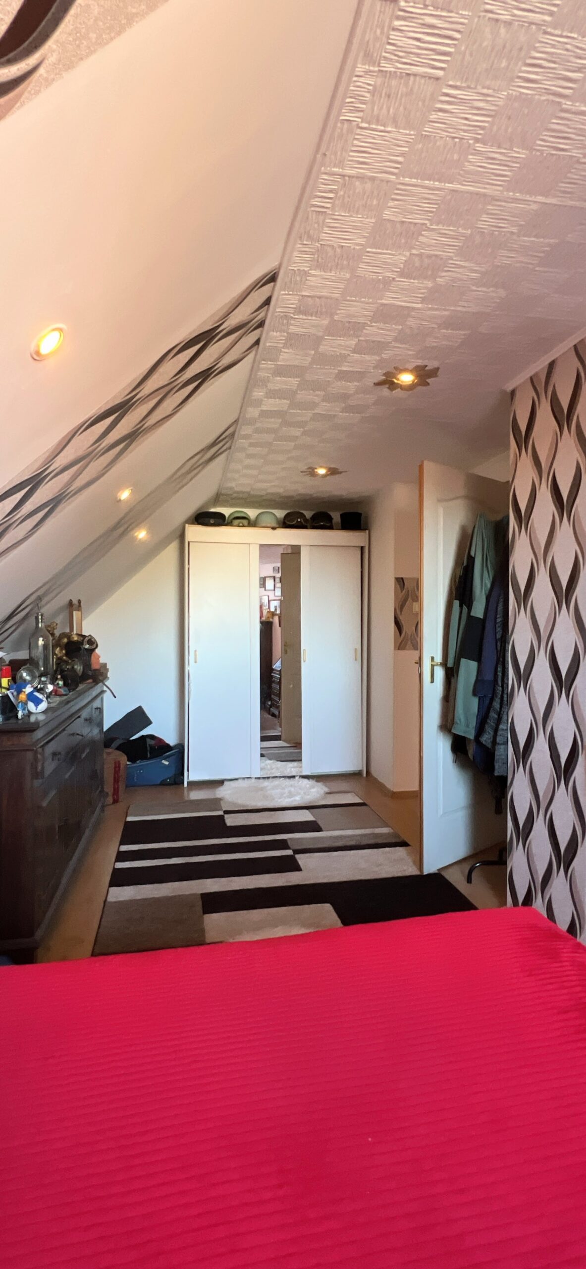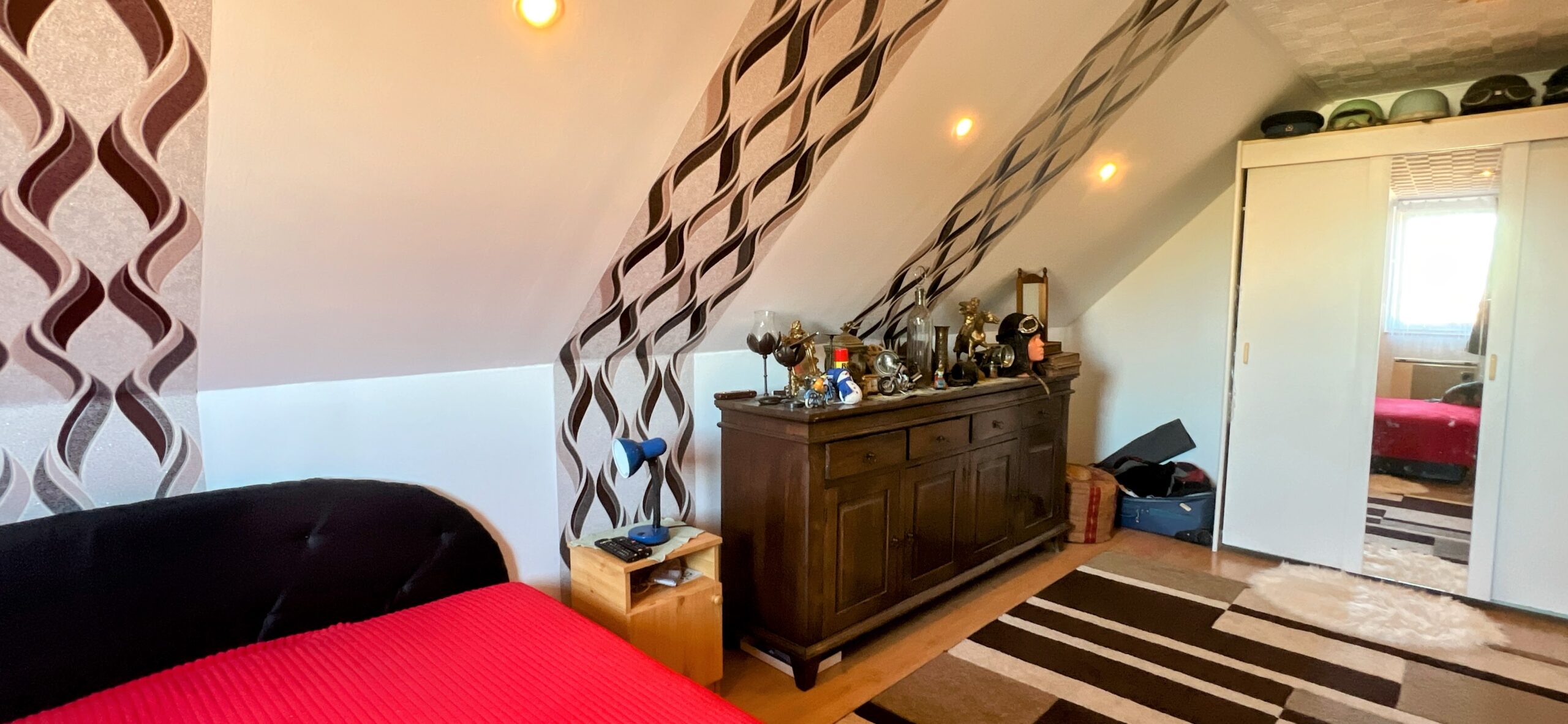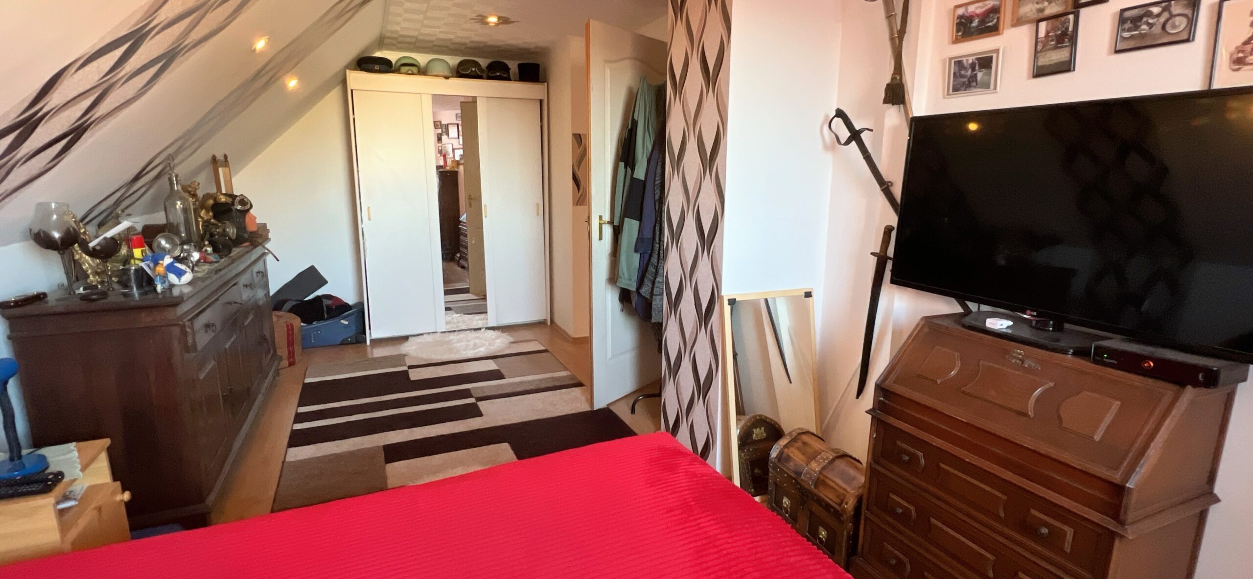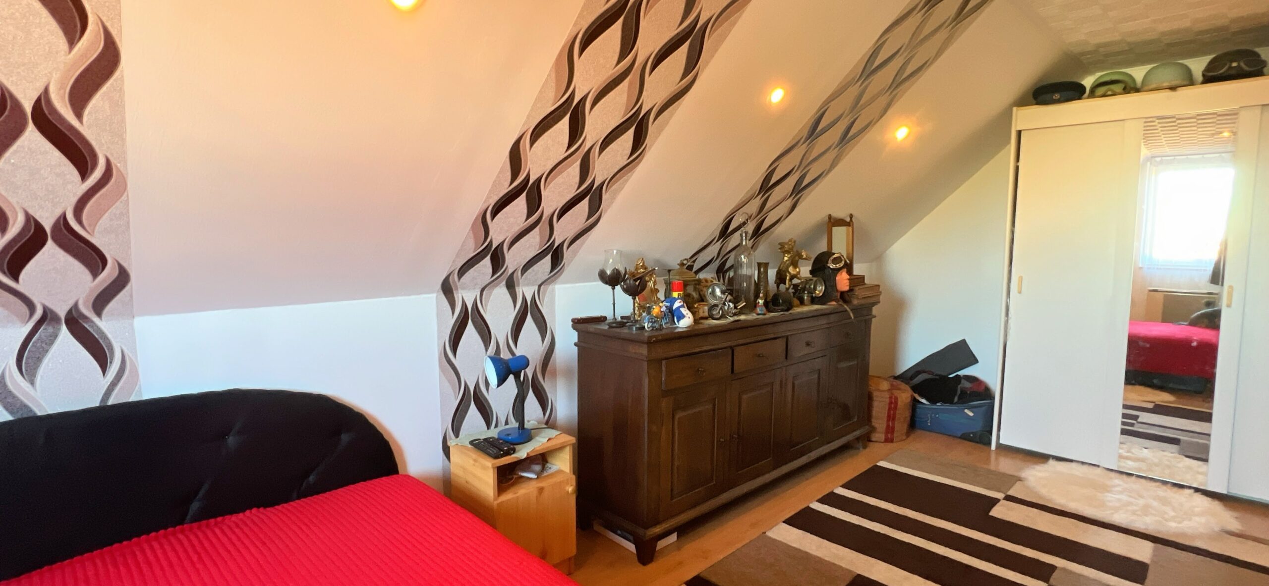 Im Obergeschoss befinden sich 2 Schlafzimmer und ein Kleiderschrank.