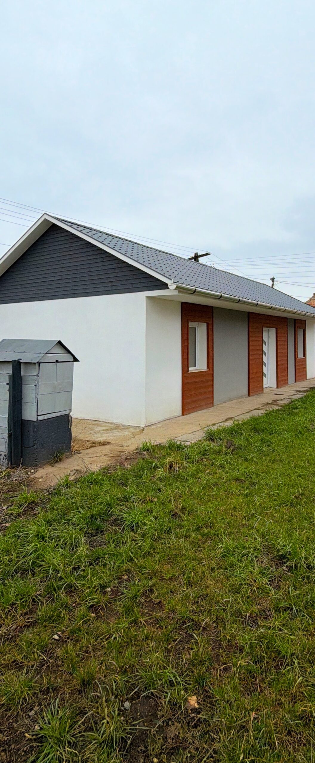 A nappali-étkező-konyha, hálószoba és fürdőszobából álló családi ház a teljes vételár kifizetése után azonnal birtokba vehető.