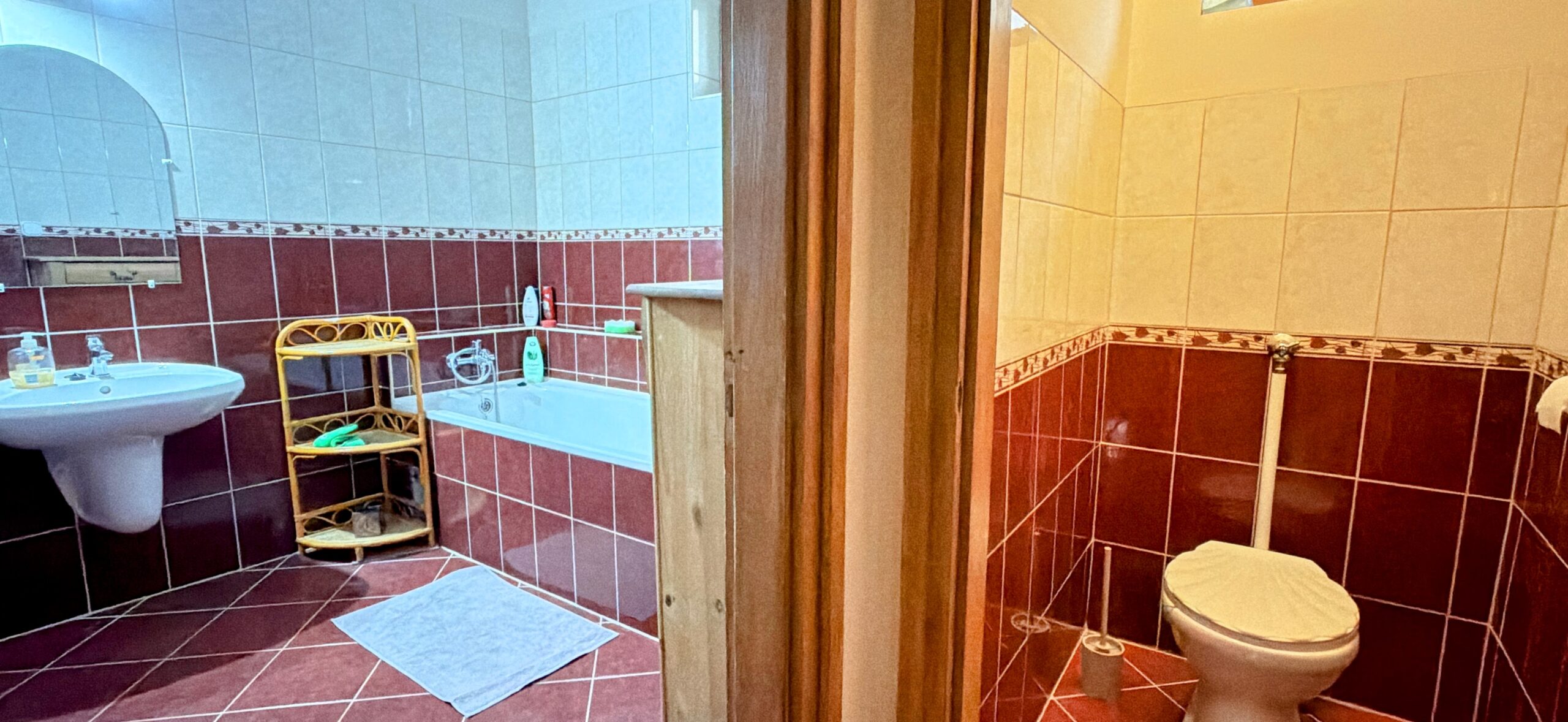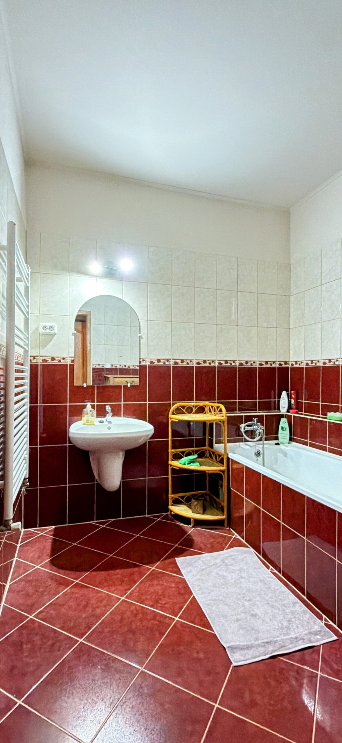2 fürdőszoba (egyik zuhanyzós WC-vel, másik kádas), + külön WC
