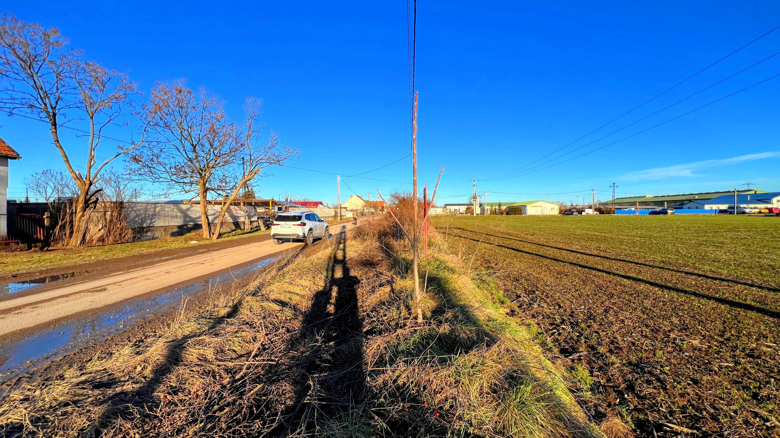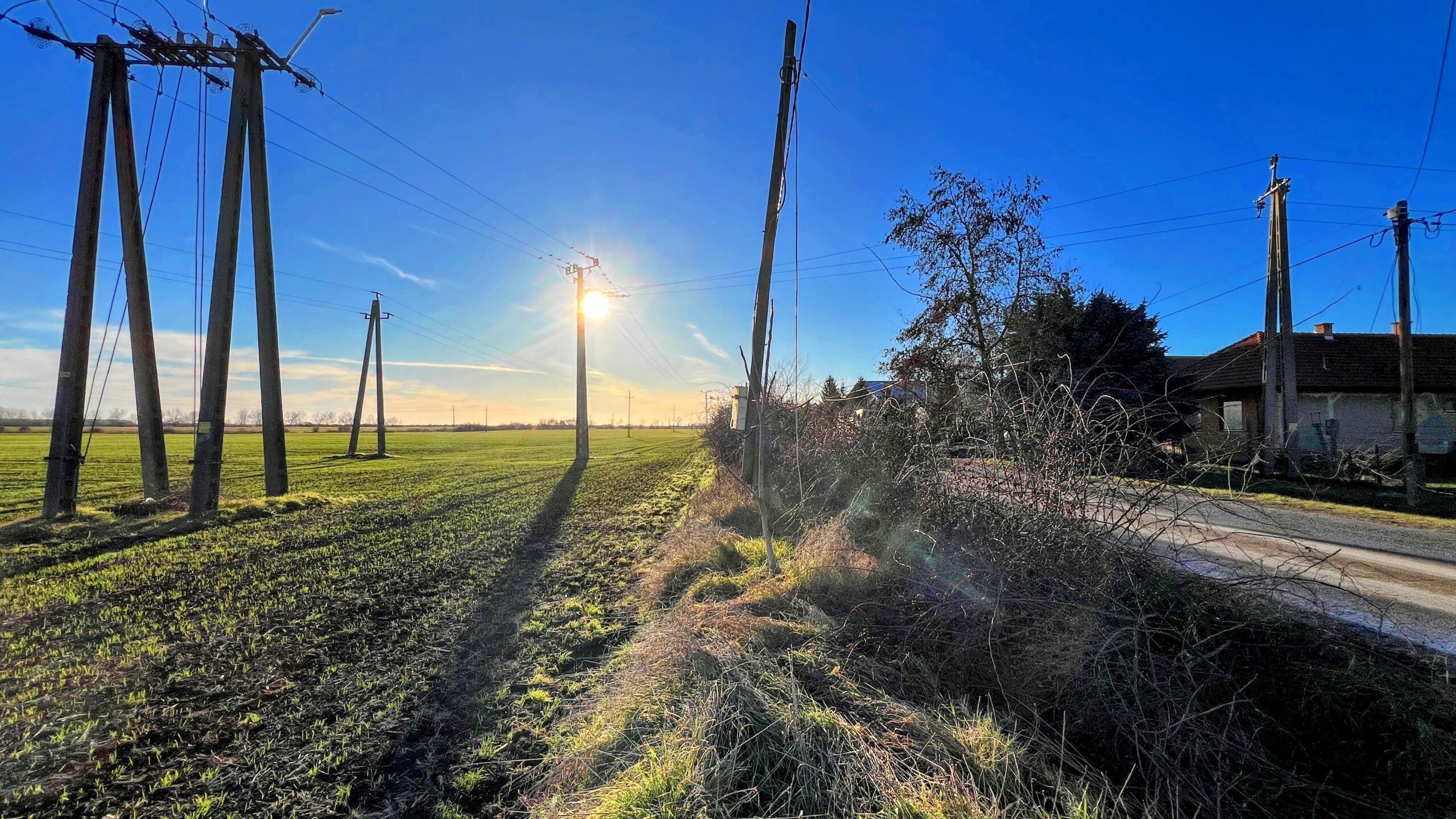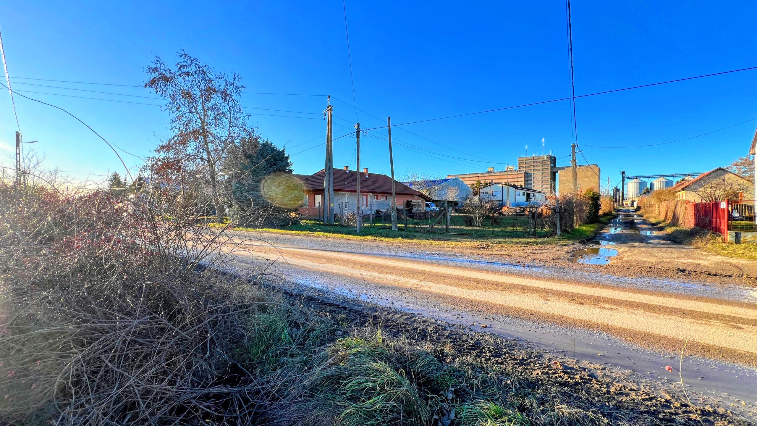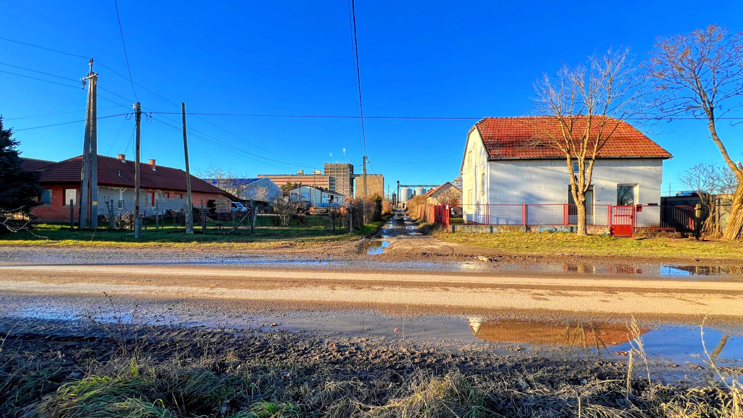 Közművek az aszfaltozott utcában megtalálhatóak.
