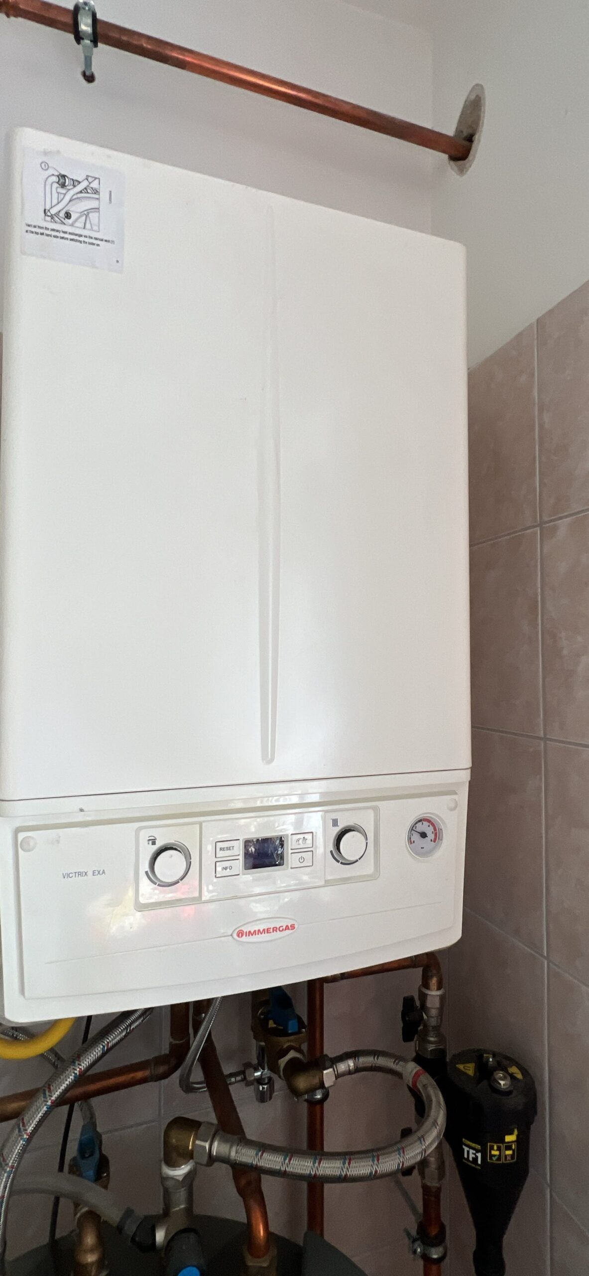 A fűtés radiátoros, kondenzációs gázkazán biztosítja a használati és a