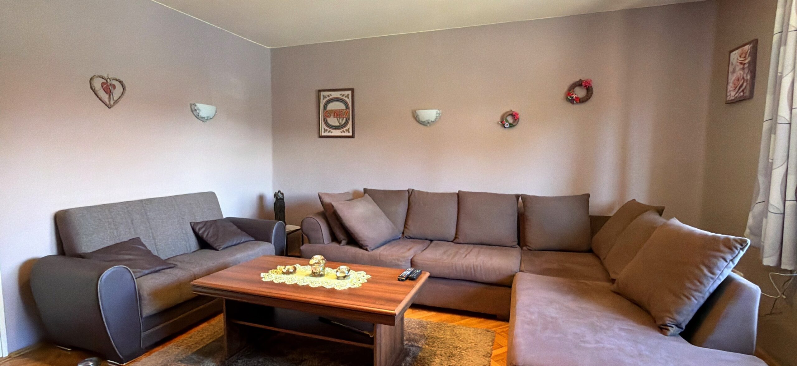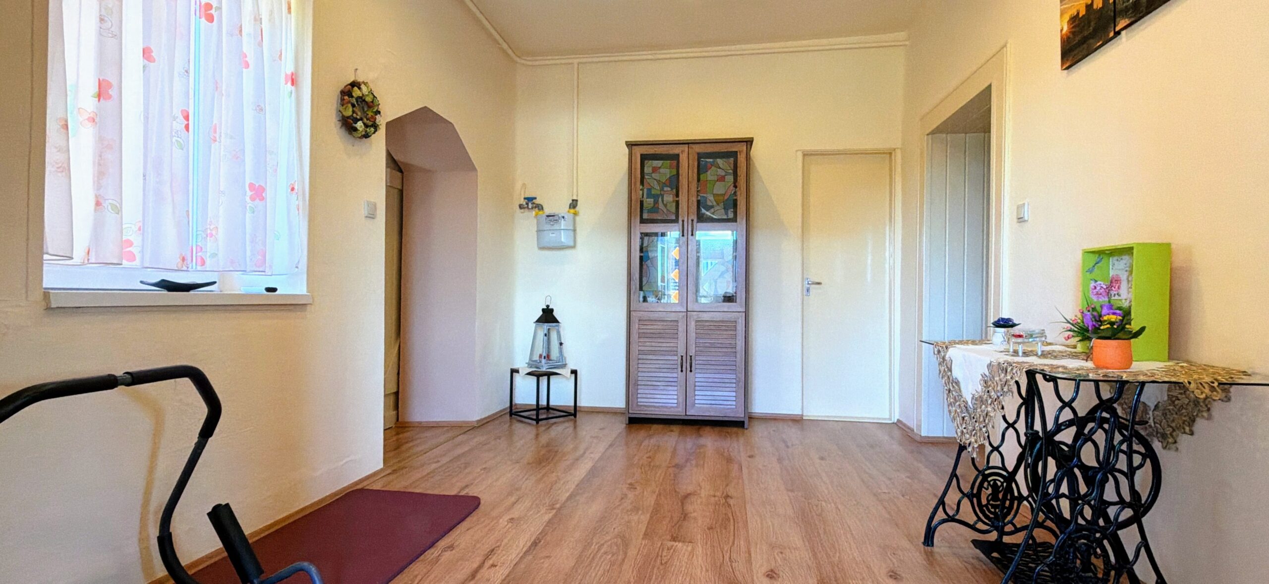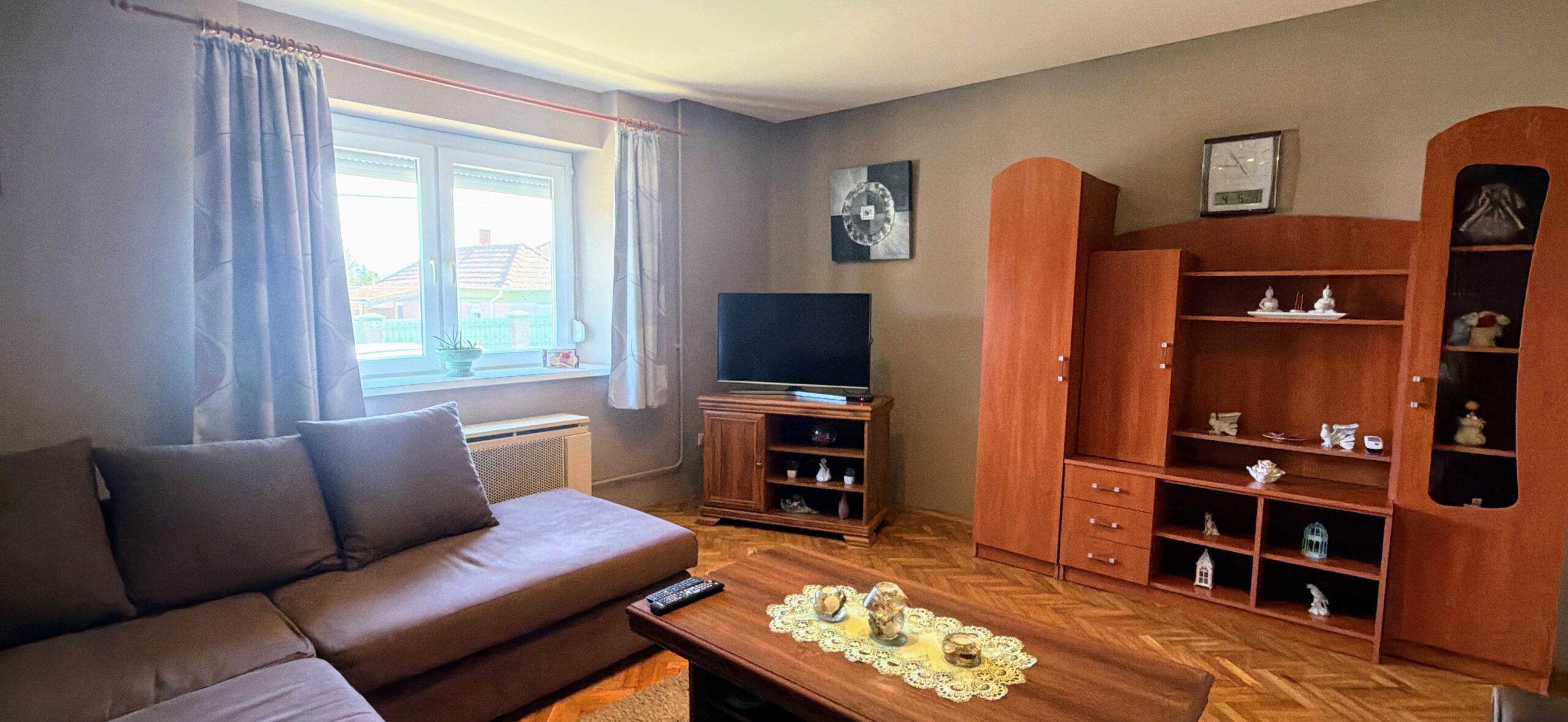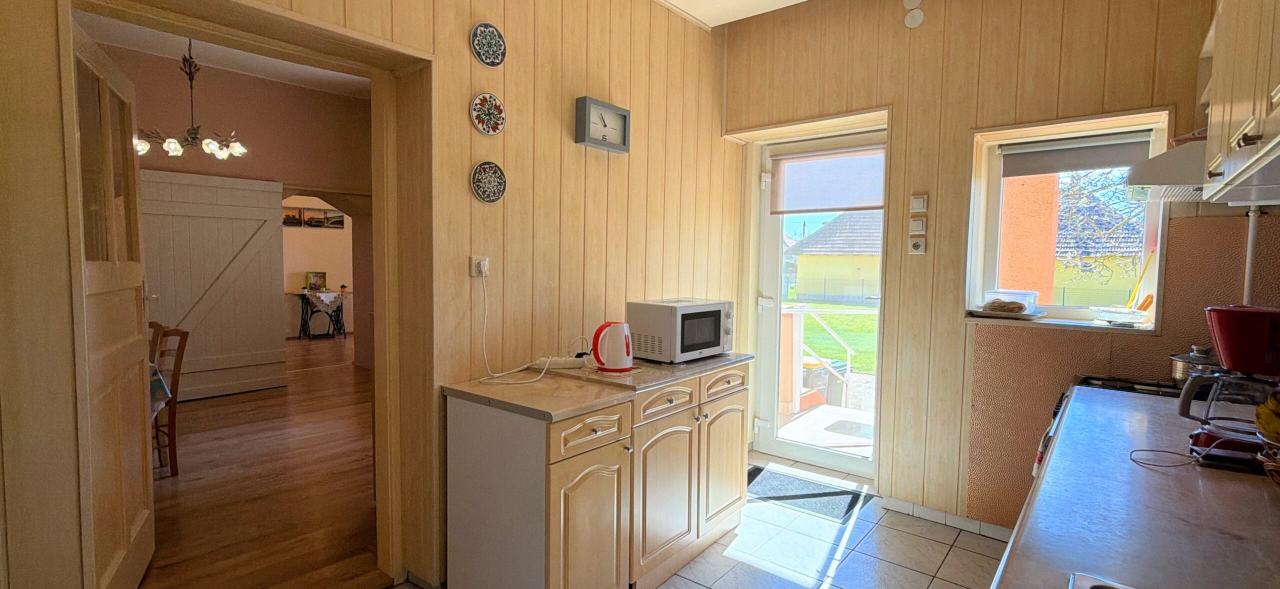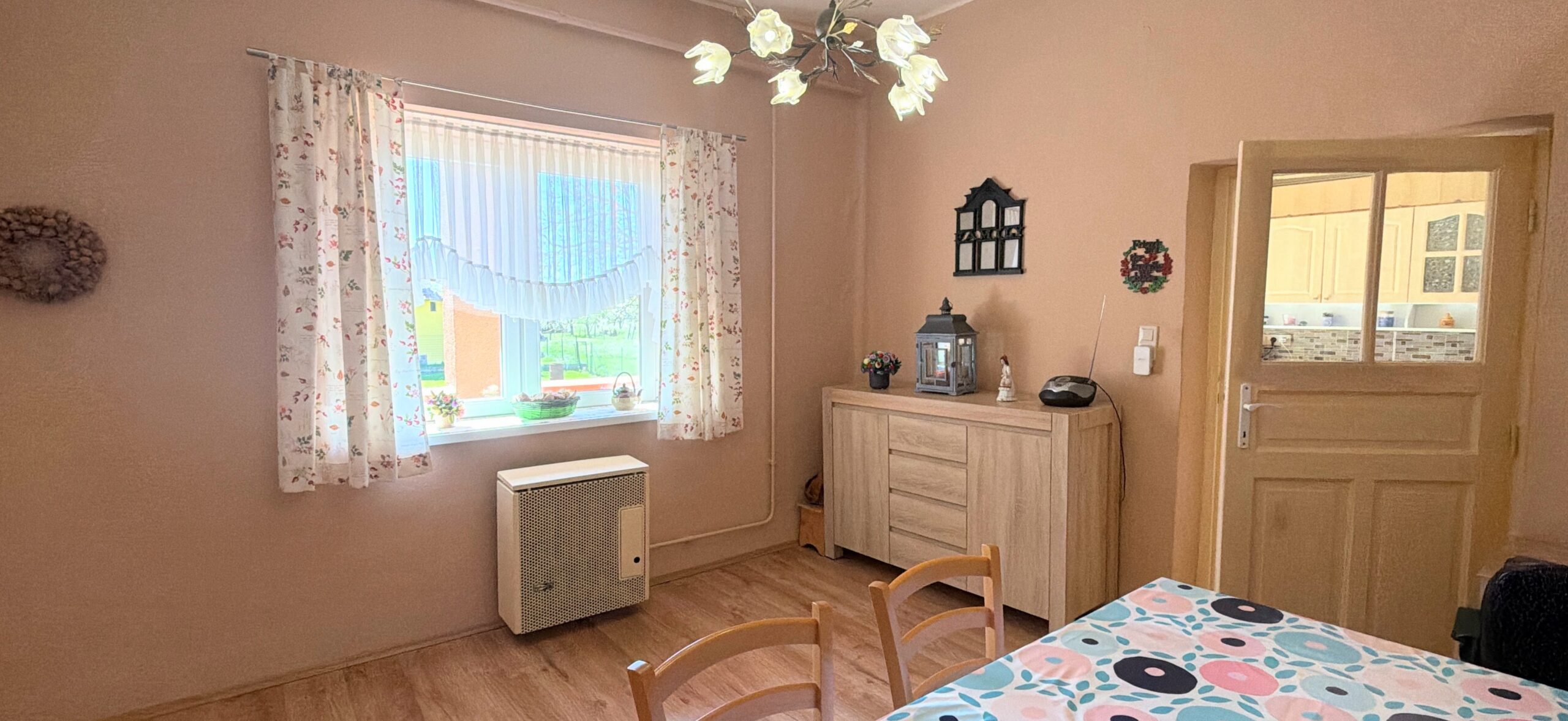 2 szoba + nappali + étkezős családi ház, nagy telekkel.